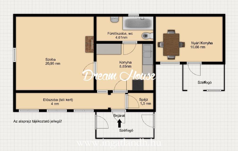 Az ingatlan jelenleg 1 szoba + konyha elosztású, azonban átalakítással könnyedén kialakítható 2 szobás elrendezés.