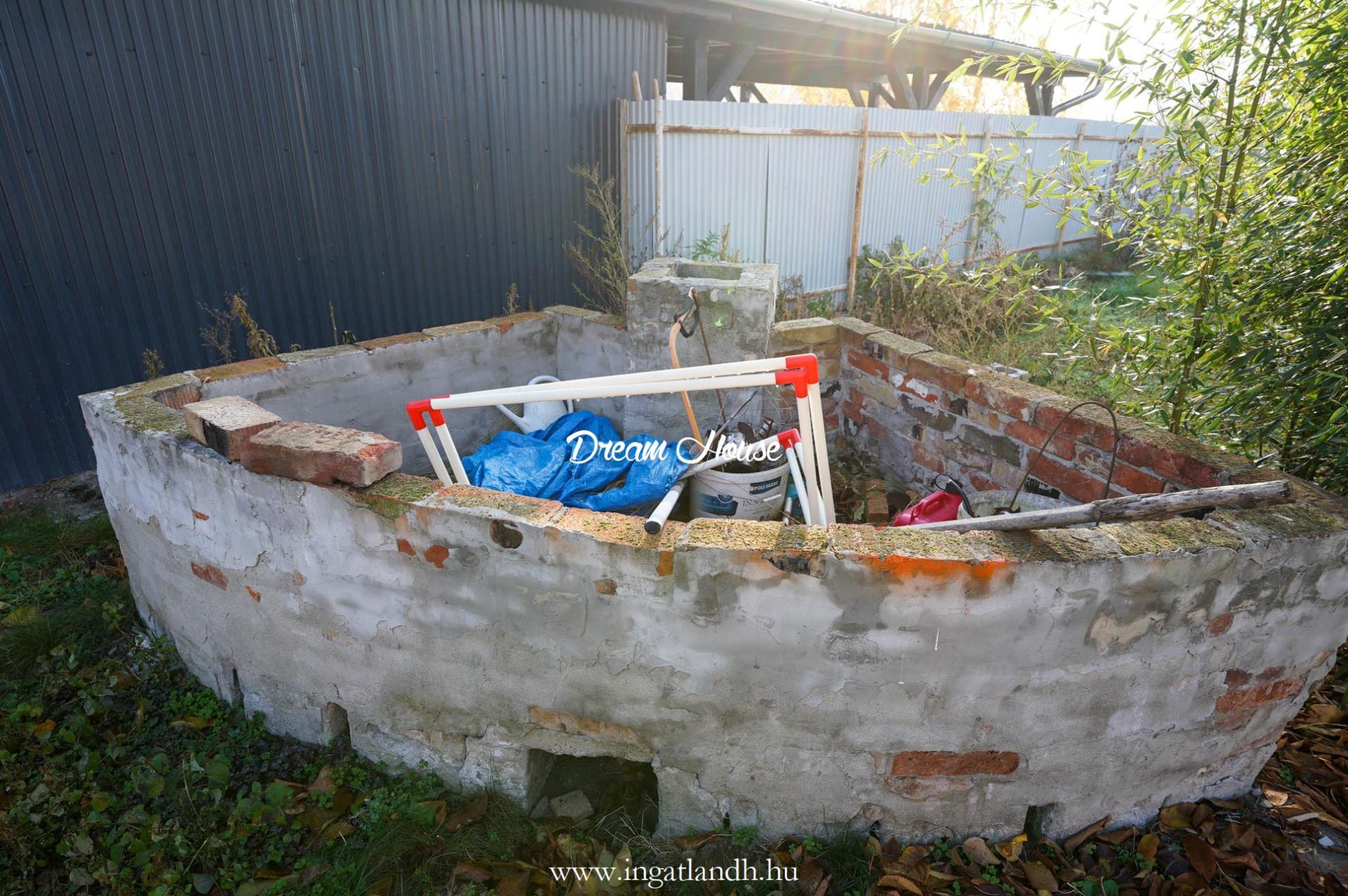 A 1096 m²-es telken egy felújításra szoruló, fűthető gyermekmedence is található – kis munkával újra a családi kikapcsolódás kedvelt helye lehet. Az utcafront lemez kerítéssel határolt.