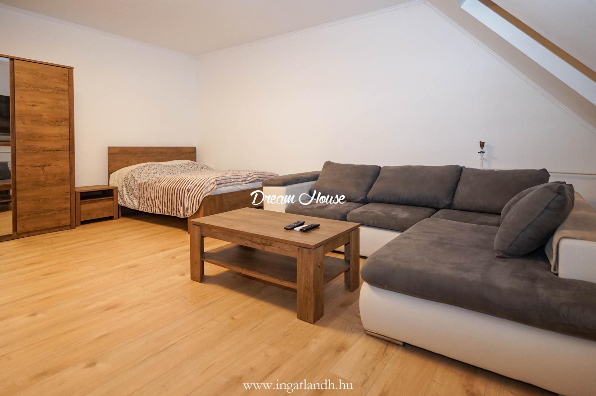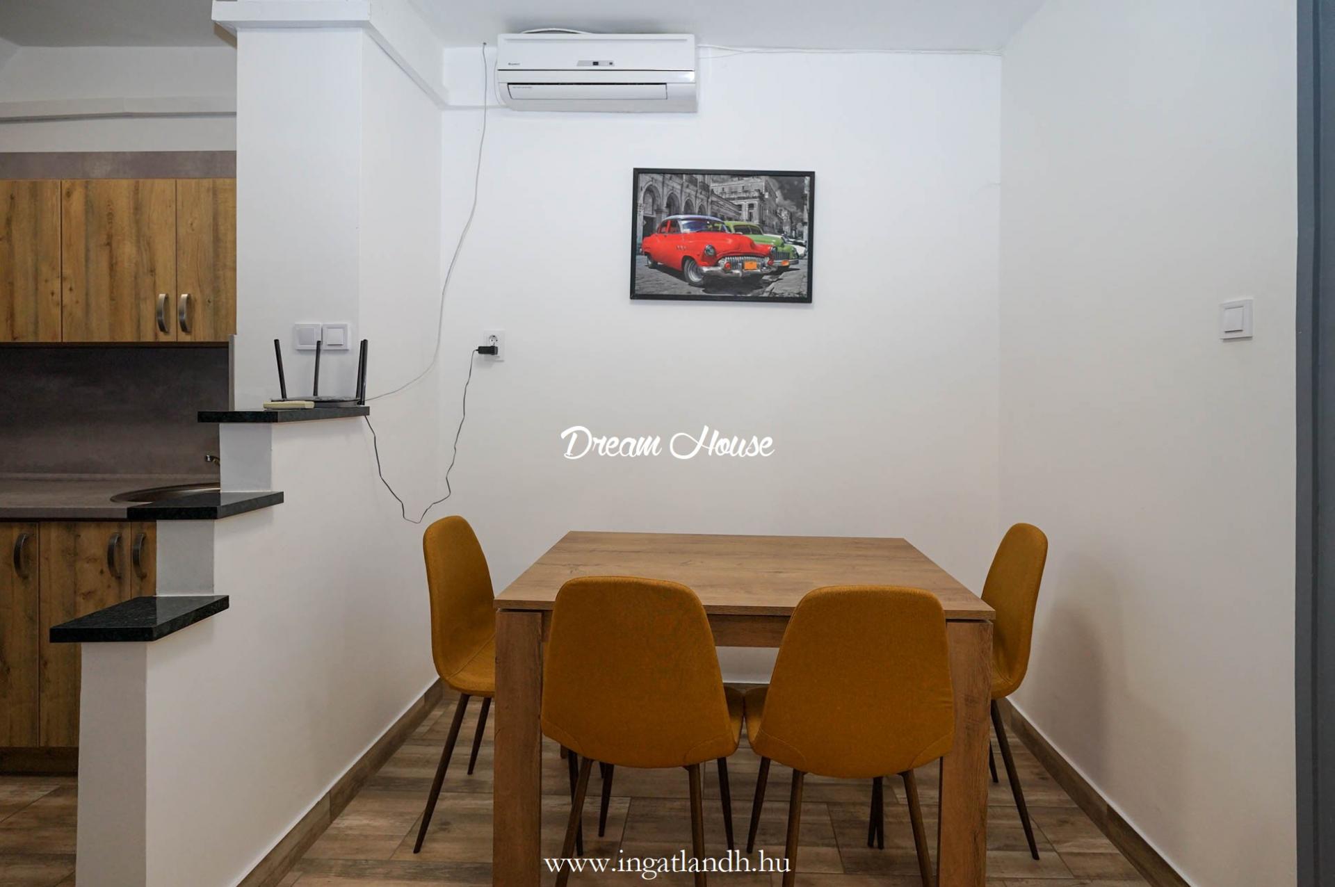 A lakás 50/58 m² alapterületű, klimatizált, 1 szoba + konyhás, és teljes körűen berendezve, gépesítve kerül átadásra.