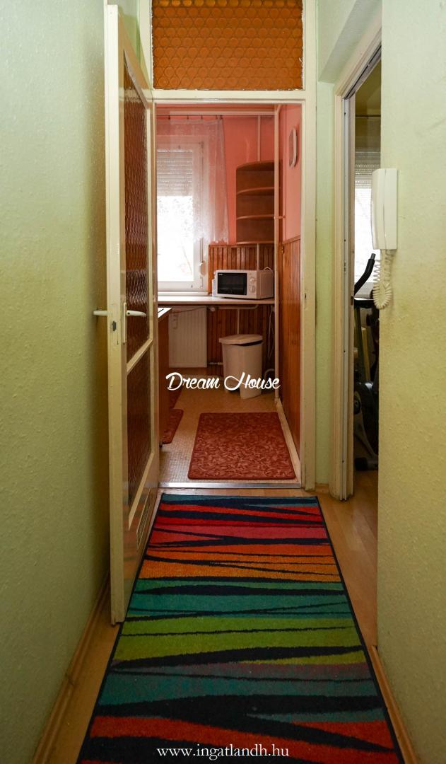 a bejárati ajtó előtt zárt előszoba található, amely a szomszédos lakással közösen használható