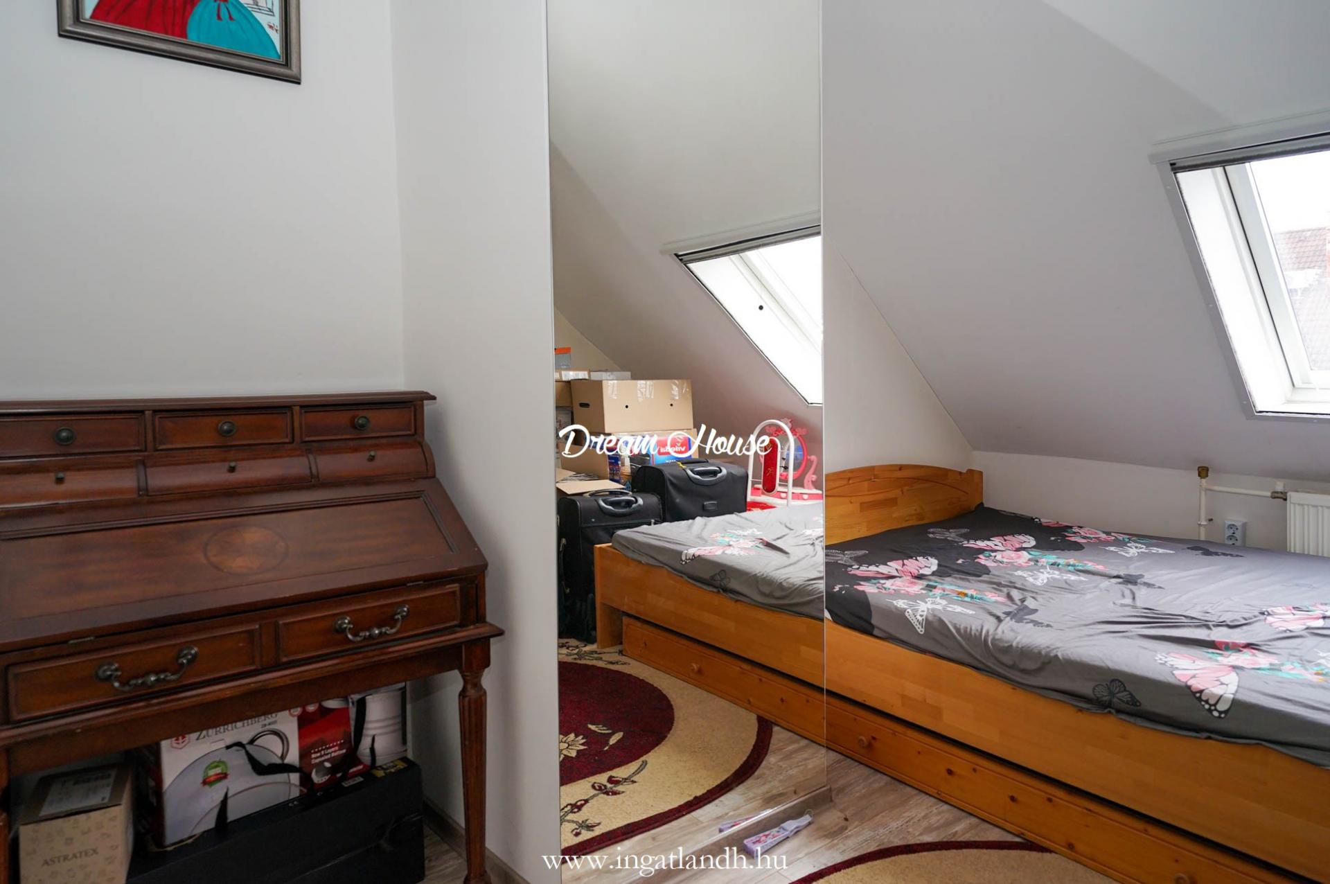 Az ingatlan egy téglaépítésű, szigetelt, belső udvaros társasház 2. emeletén helyezkedik el, zárószinten. Alapterülete 85 (100) nm, elosztása kiváló: 3 hálószoba, nappali–étkező, konyha és gardrób került kialakításra. Az amerikai konyhás elrendezés igény szerint könnyen megvalósítható. A két szintet egyedi, bükkfából készített lépcső köti össze. Tájolása nyugati, és északi ennek köszönhetően világos, jól benapozott.