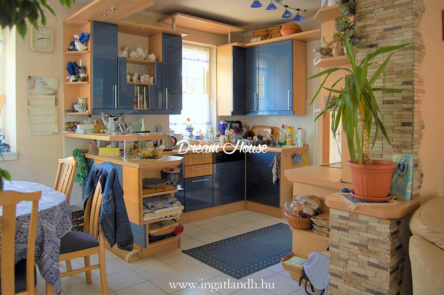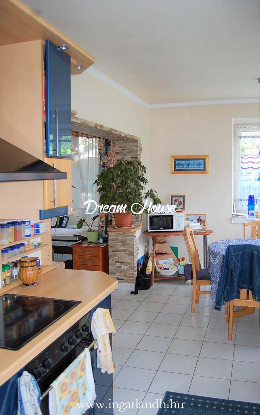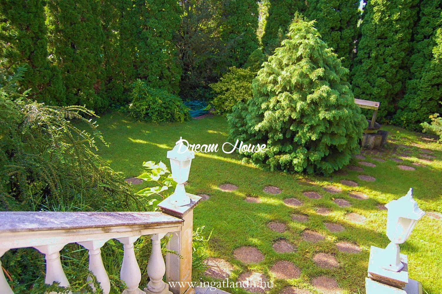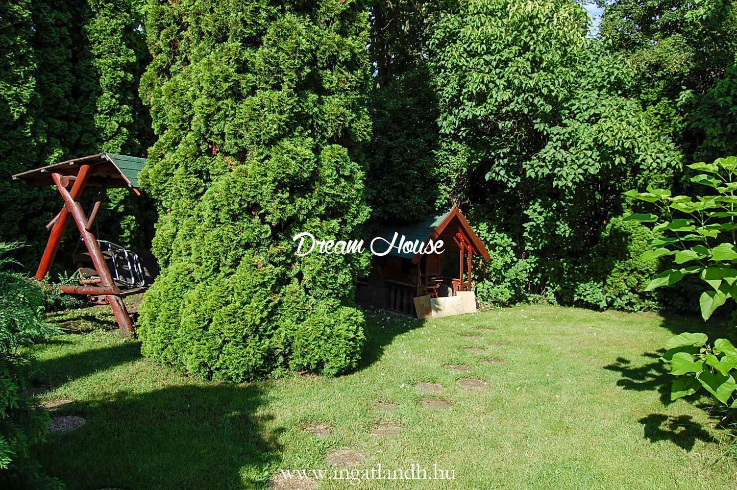 A szigetelt, téglaépítésű, szintes, szép állapotú, 165 nm alapterületű családi ház egy 500 nm-es parkosított, öntözőrendszerrel ellátott pihenőkerten helyezkedik el. A kellemes hangulatú udvarban kerti tó, szalonnasütő és egyállásos garázs is található, a ház előtt pedig két autó számára kialakított parkoló.