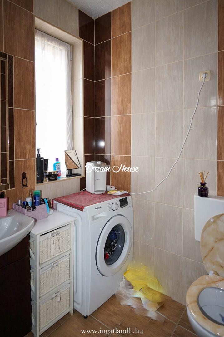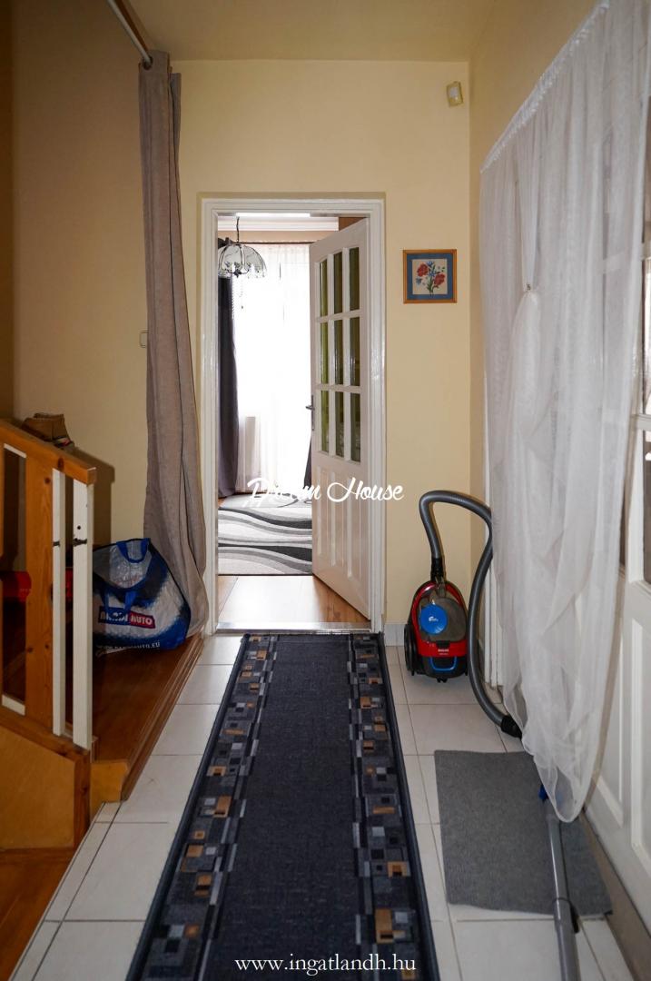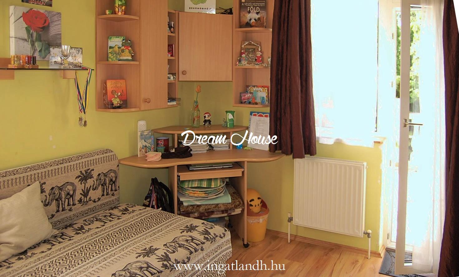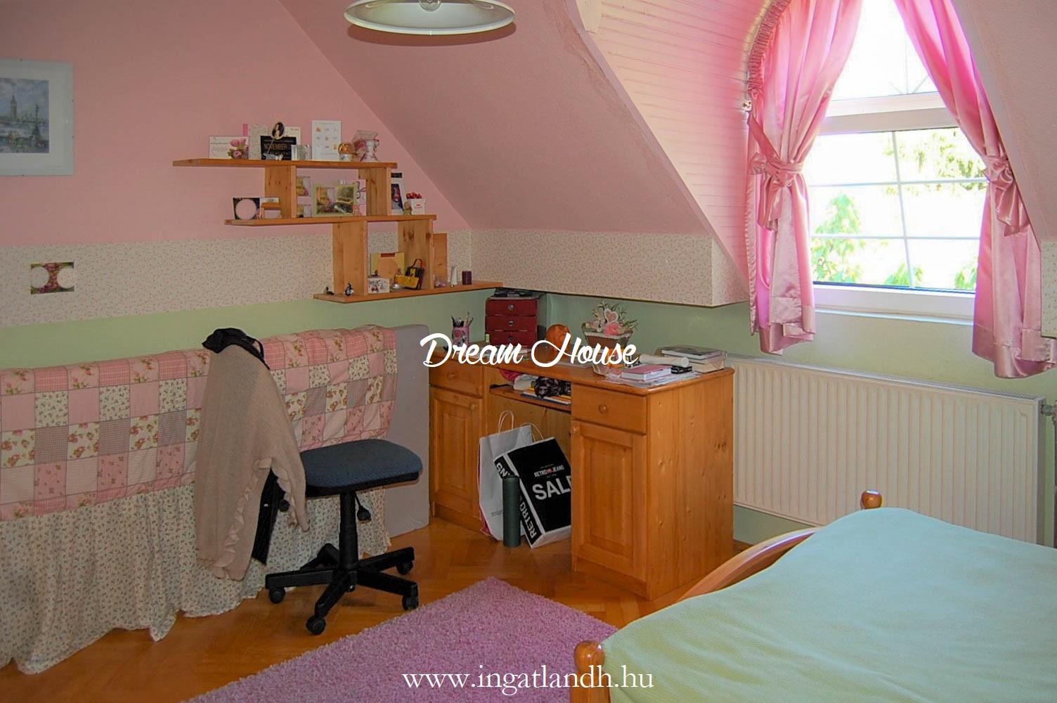 A szigetelt, téglaépítésű, szintes, szép állapotú, 165 nm alapterületű családi ház egy 500 nm-es parkosított, öntözőrendszerrel ellátott pihenőkerten helyezkedik el. A kellemes hangulatú udvarban kerti tó, szalonnasütő és egyállásos garázs is található, a ház előtt pedig két autó számára kialakított parkoló.