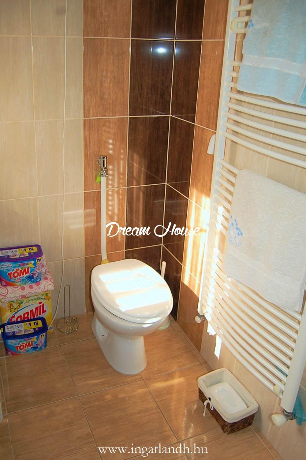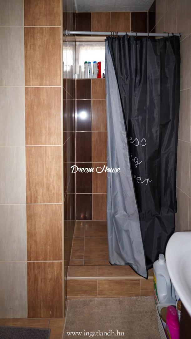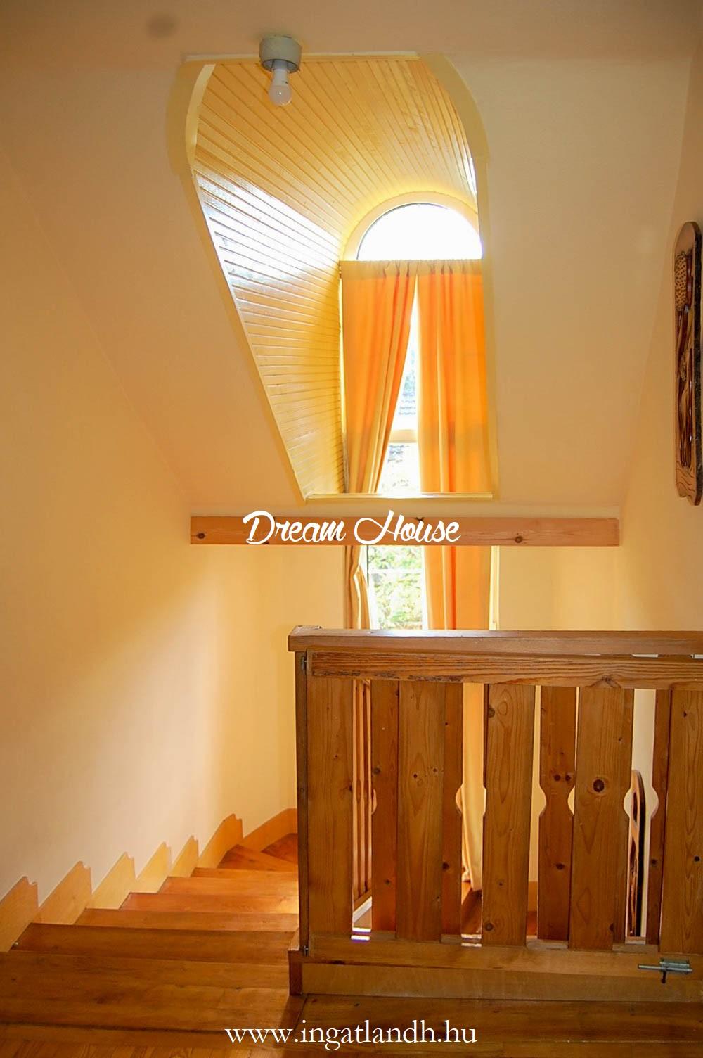Földszint: tágas nappali, amerikai konyha étkezővel, spájz, zuhanyzós WC, valamint egy beépített szekrényes dolgozó- vagy gyerekszoba.