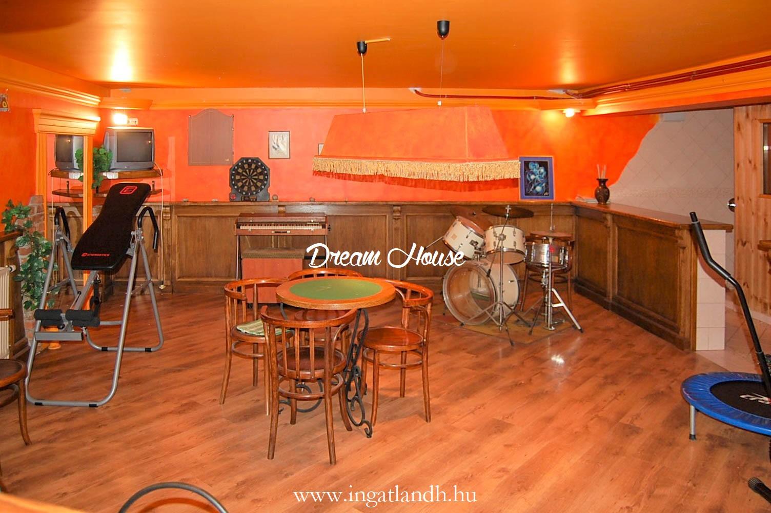 A pincében hangulatos klubhelyiség került kialakításra bárpulttal, szaunával és zuhanyzóval.