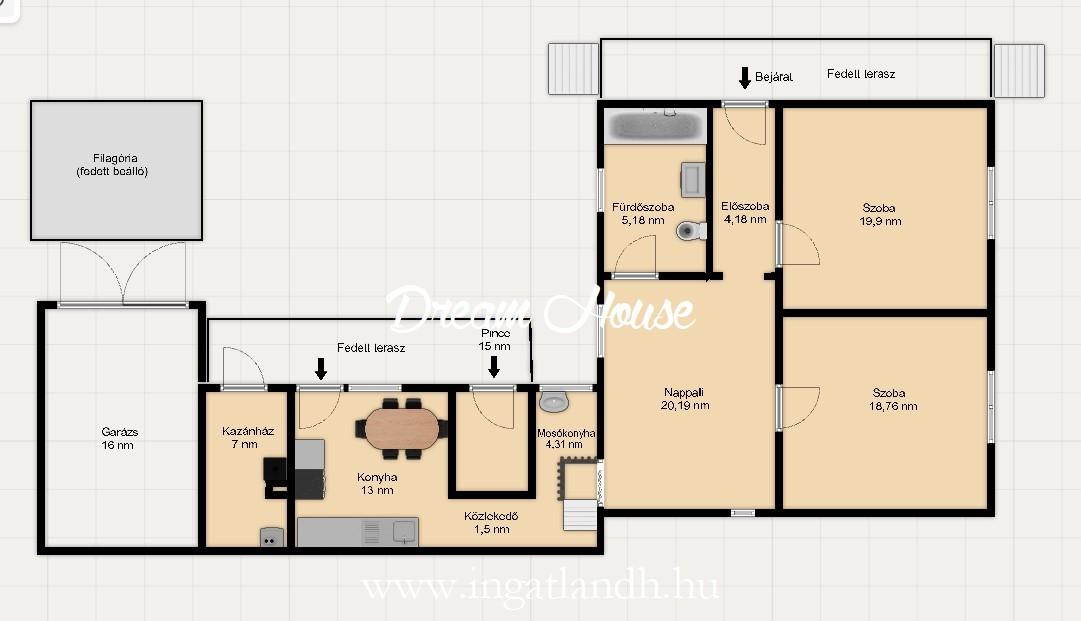 Az ingatlan 94 nm alapterületű, két szoba, nappali konyhás, tökéletes választás azoknak, akik már csak a költözésre vágynak. A 2016-ban történt felújításnak köszönhetően a ház szép állapotú, így csak a kényelemre kell koncentrálnia.