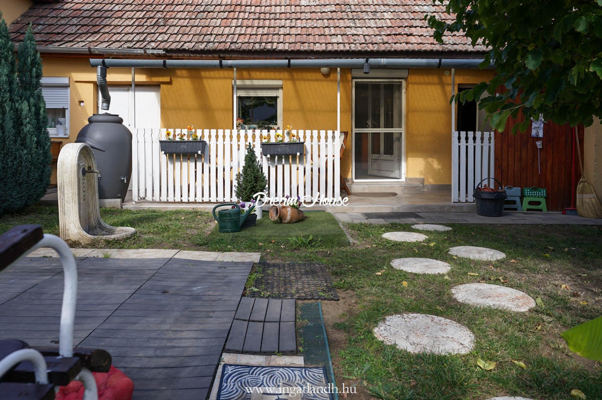 A ház falazata vályog, jó szerkezeti állapotban, műanyag nyílászárókkal, redőnnyel, déli és nyugat tájolású, így természetes fényben gazdag, és nyugodt, rendezett előkerttel és hátsó udvarral, mely ideális kikapcsolódáshoz, pihenéshez, és a kertészkedés kedvelőinek. A kert hátsó része 500 nm telepített vágásérett akácfákkal, előtte pedig több fajta gyümölcsfákkal telepítve. ( japán körte, kajszi barack, szilva, meggy ) Az előkertben örökzöldek és banán fa.
