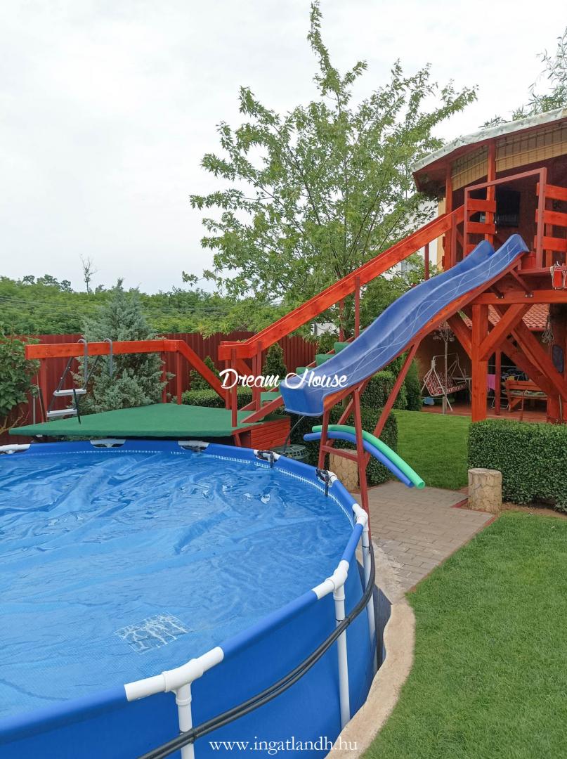 - gyerekeknek kilátó/játszóház, ahonnan egy csúszda vezet a medencéhez